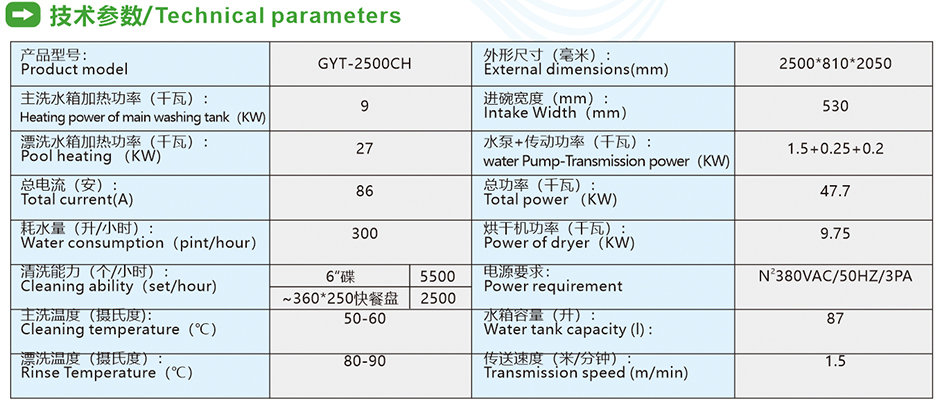 • 單缸兩道漂洗單烘干通道式洗碗機GYT-2500CH
