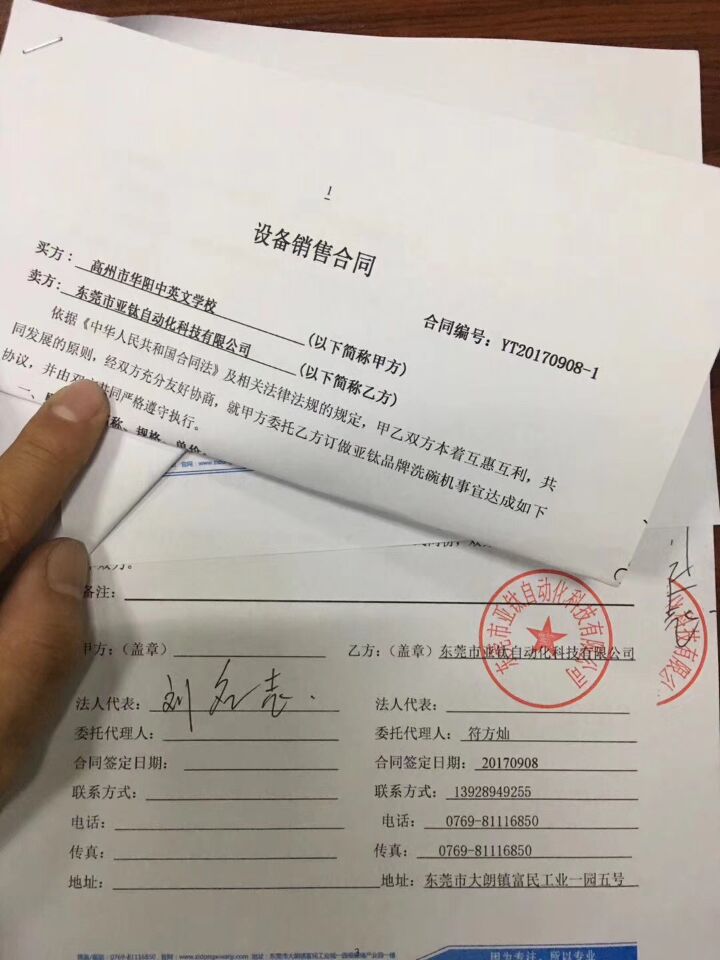 經(jīng)過(guò)三個(gè)月的洽談,終于得到高州市華陽(yáng)中英文學(xué)校各位領(lǐng)導(dǎo)的認(rèn)可,正式和亞鈦洗碗機(jī)合作,并與七月份中旬裝機(jī)試機(jī)成功,當(dāng)場(chǎng)試機(jī)清洗的餐具得到各位領(lǐng)導(dǎo)的一致肯定。特別是劉校長(zhǎng)的鼎力支持。